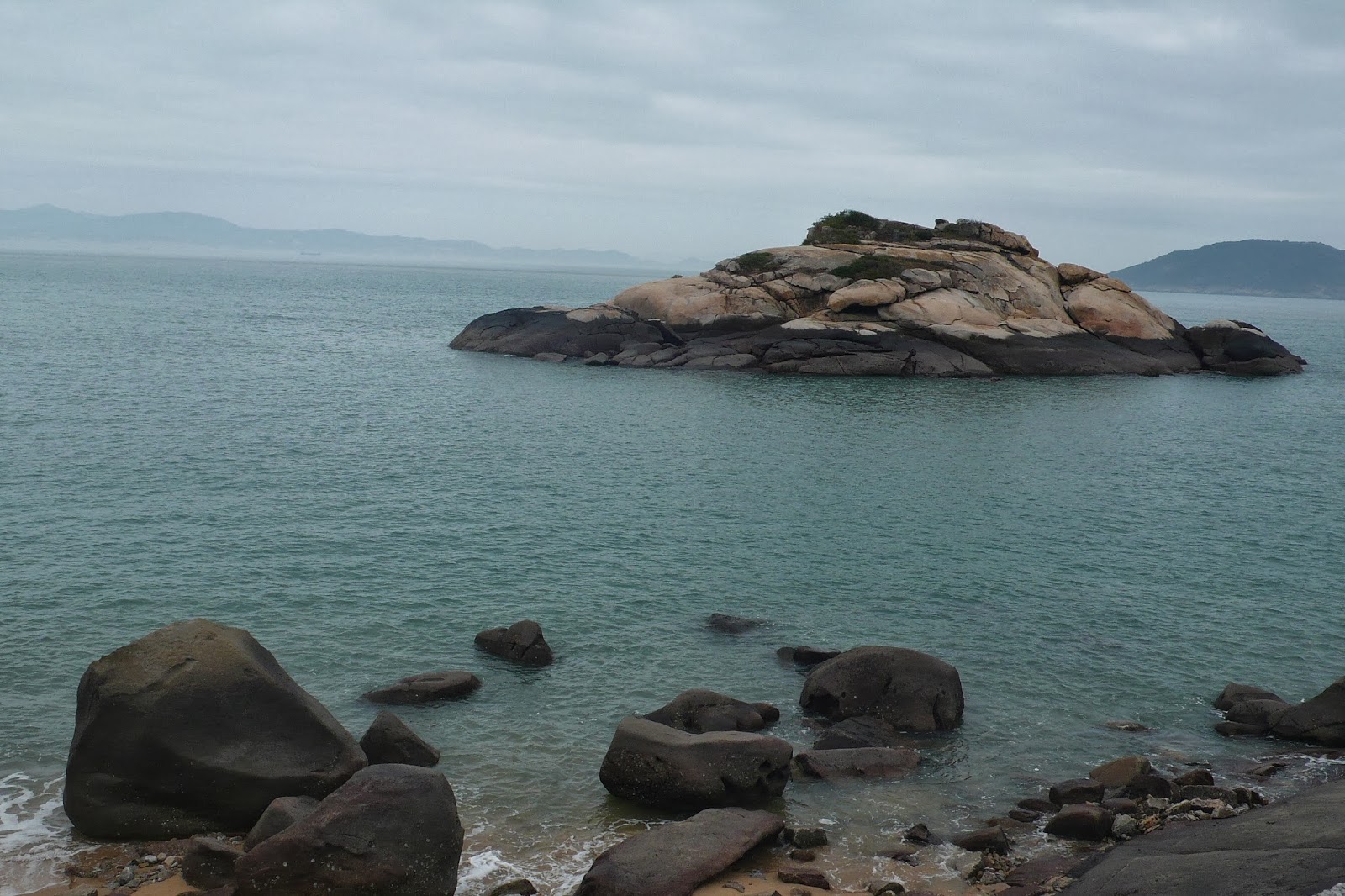 該巨石亦即是台灣小百岳認證必拍的標識,也就是說,車行到此,不論你是開車或是騎摩托車而來,停妥了車輛就算是登頂「蛇頭山」了。這天抵達時約是下午一點半左右;蛇頭山,標高僅有20公尺,沒有三角基點,也不是澎湖的最高山峰;如果不是遠在離島,登頂應是何其輕而易舉啊!